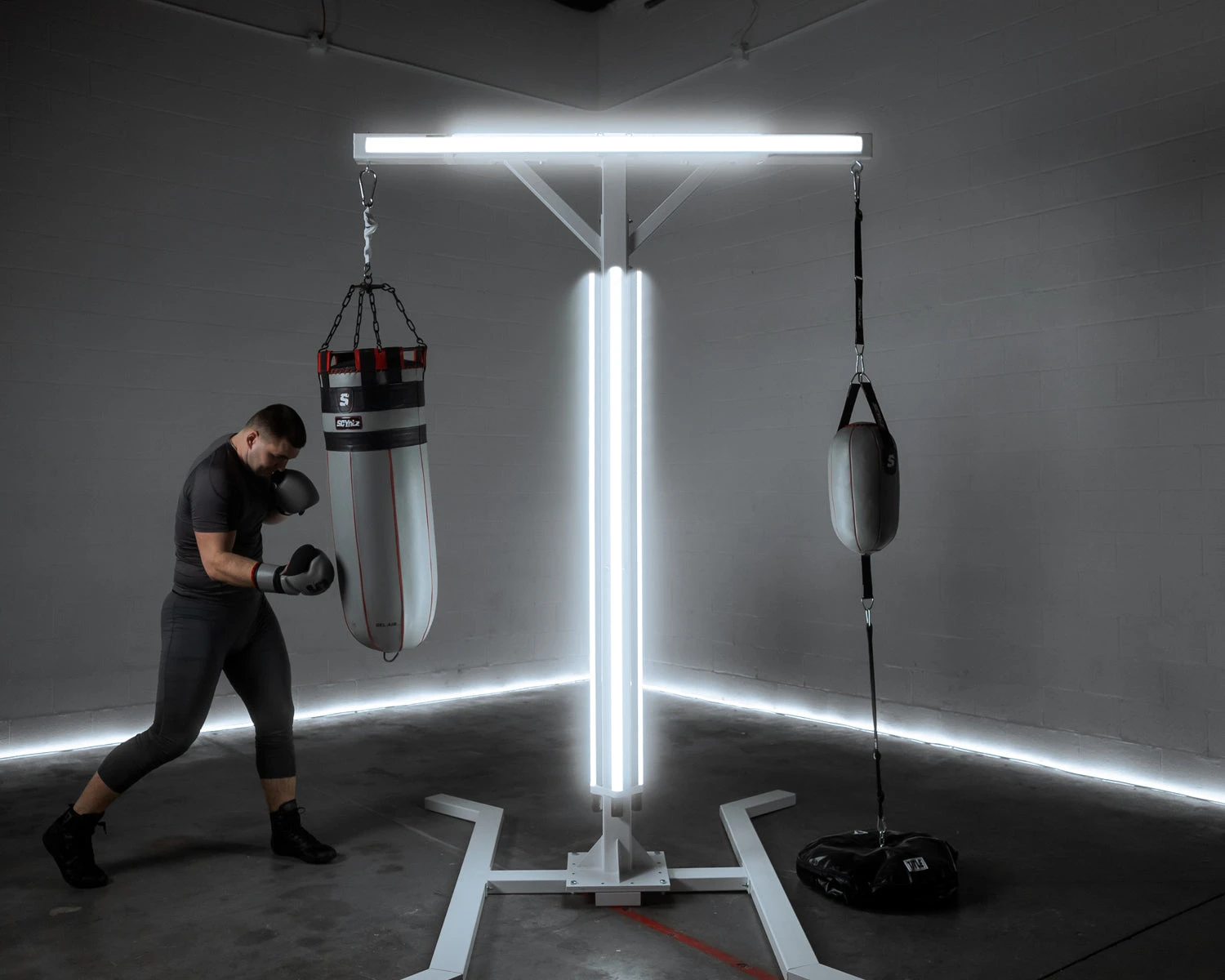 The exclusive SCYntz Leather Bullet Bag is built for ideal work on all key target areas: the head, body and everything in between. The bag is constructed from 2.2mm thick genuine leather featuring 2” of GEL Air Foam with a soft fiber center and double-stitched seams that are reinforced with nylon/leather straps to prevent wear and tear. SCYntz’s revolutionary GEL Air Foam consists of alternating GEL layers that have been infused with tiny pockets of air working together to raise the bar in shock-absorption technology. Hang your bag with the durable galvanized metal chain and circular swivel ring and if you want even more stability, the bag also has a posterior D-ring to create a stationary target.
