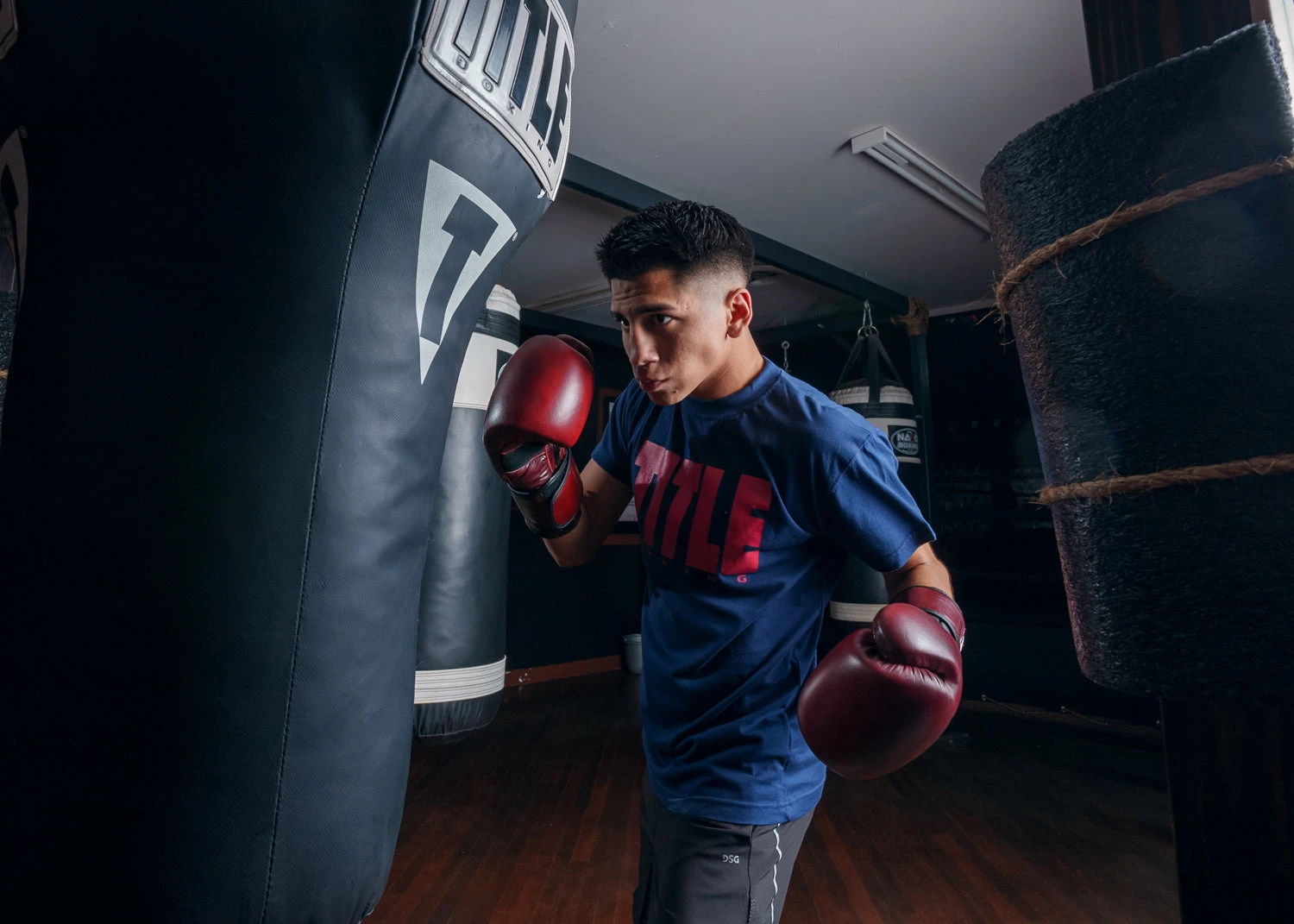 TITLE Boxing Blood Red Leather Training Gloves