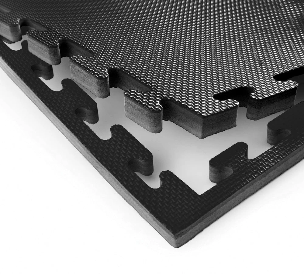 Ideal and most convenient option for lining gym floors, studios, workout and exercise rooms, weight training areas, around heavy bags, boxing rings, cages… Anywhere you require padded floor space. These mats are made from premium vinyl with shock absorbing foam for superior grip and longer wear. Each side of the mat is black so once one side has worn, you can flip it over to the other side to double the life of your entire floor. Mats interlock for simple assembly.