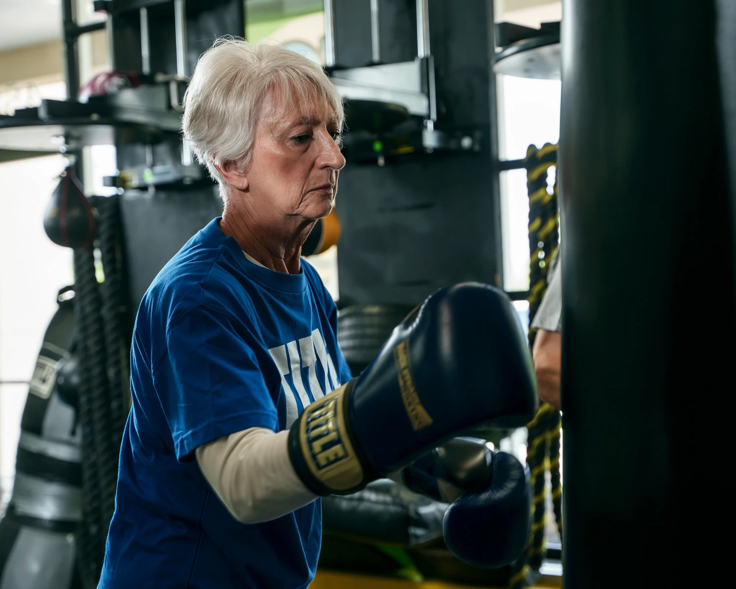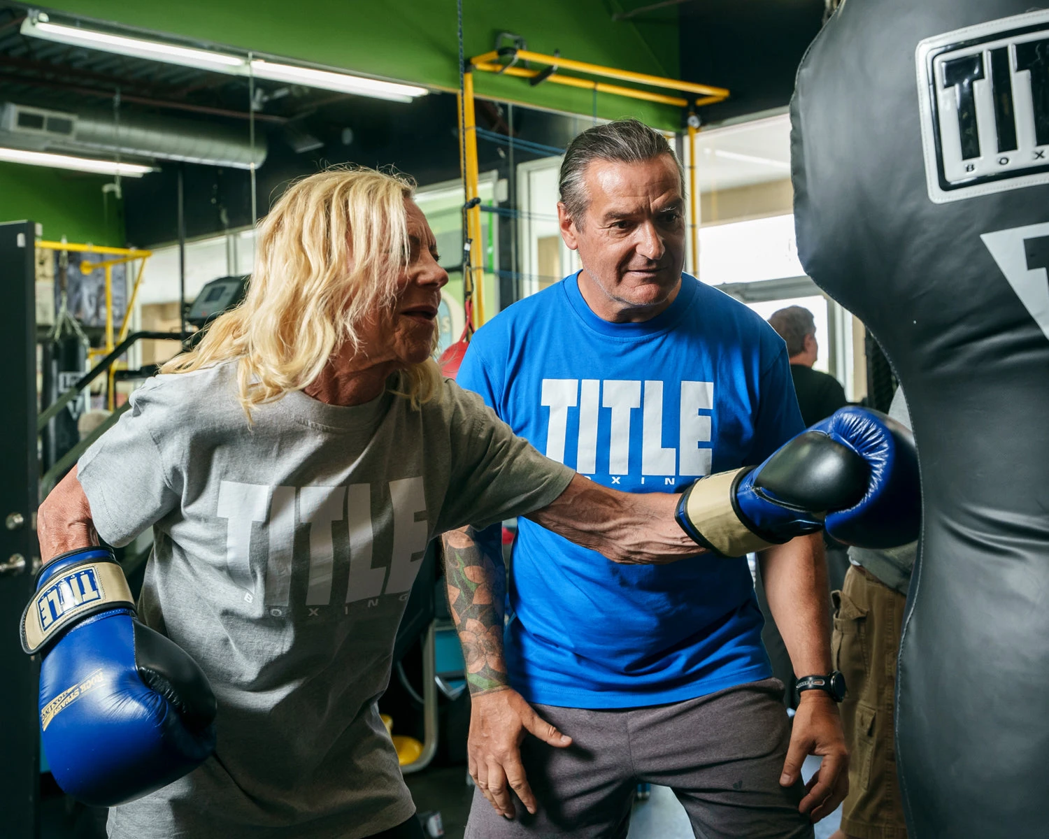 Title Boxing has partnered with Rock Steady Boxing to provide a line of equipment made for our Parkinson’s Athletes. TITLE Boxing Rock Steady Training Gloves are made from synthetic leather and include a perforated palm that provide greater air flow and breath-ability. The hand compartment is slightly larger for athletes that prefer to wear GEL quick wraps under their gloves for added protection. The wrap around closure makes it easier to take the glove on and off.