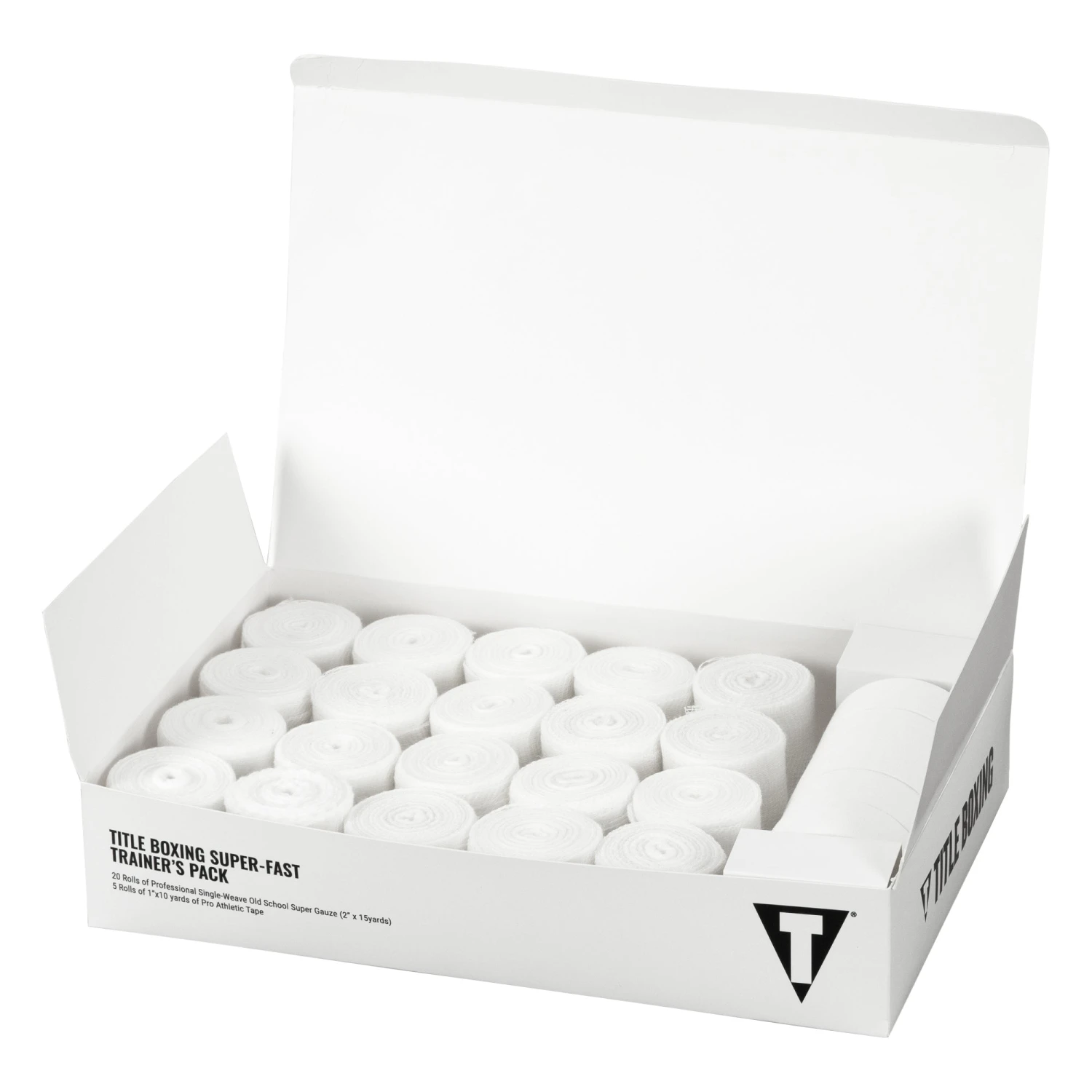 We came up with the Super-Fast Trainers Pack that includes the right combination of tape and gauze to make it easy always to be prepared. The package contains 20 Rolls of professional, single-weave old-school super gauze (2” x 15 yards) and 5 Rolls of pro athletic tape (1” x 10 yards). The Gauze and Tape meet all amateur and professional athletic regulations.
